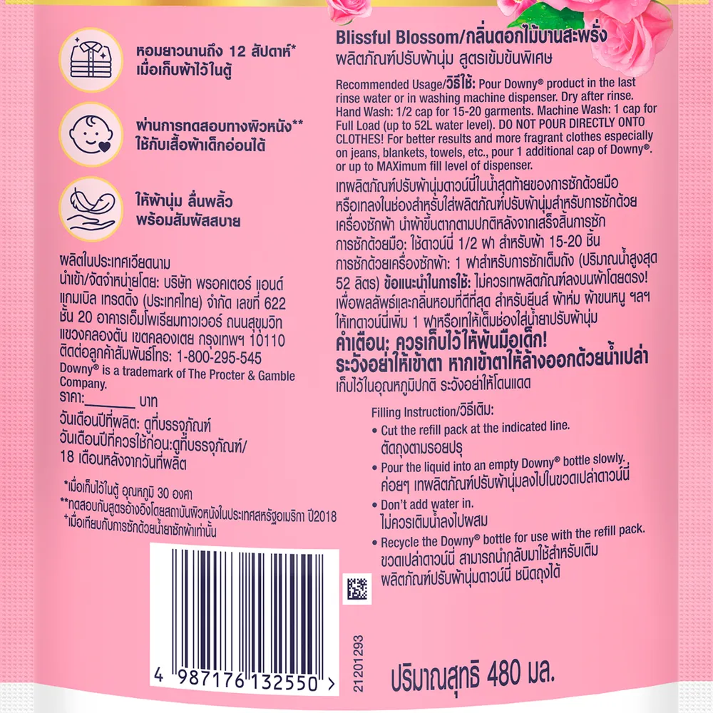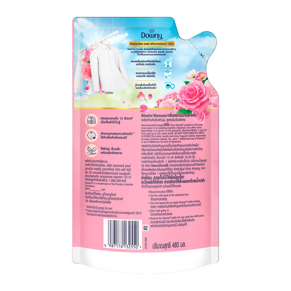 ดาวน์นี่ พรีเมียม เพอร์ฟูม น้ำยาปรับผ้านุ่ม กลิ่นบลิสฟูล บลอสซั่ม 480 มล.