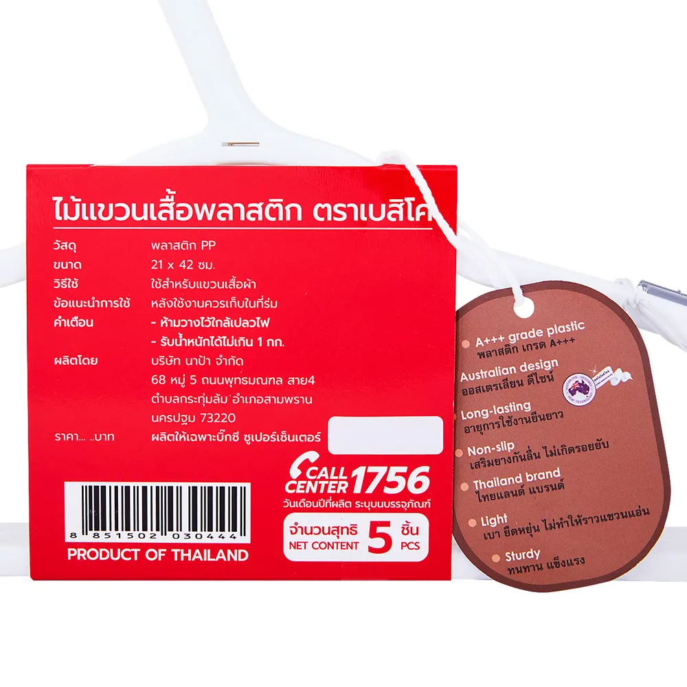 เบสิโค ไม้แขวนเสื้อทรง OZZI รุ่น 3044 แพ็ค 5 สีขาว