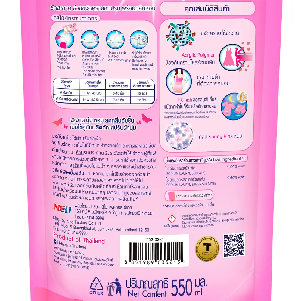 ไฟน์ไลน์ พลัส ผลิตภัณฑ์ซักผ้า กลิ่นซันนี่ พิ้งค์ 550 มล.
