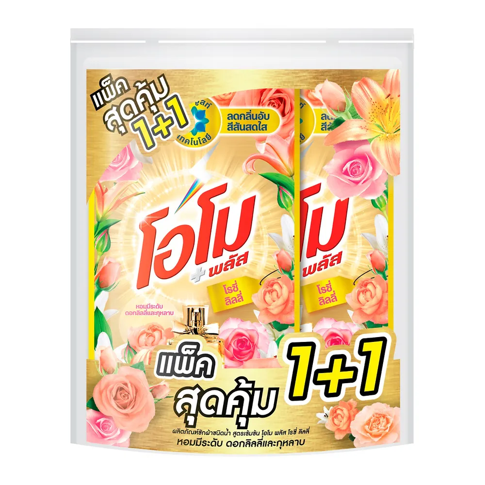 <p>โอโม พลัส น้ำยาซักผ้าชนิดน้ำสูตรเข้มข้น กลิ่นโรซี่ ลิลลี่<br />