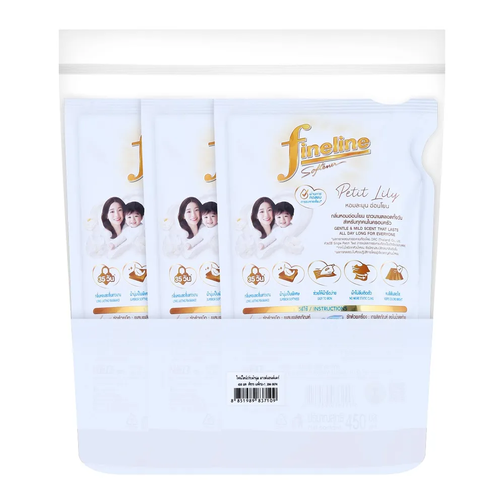 ไฟน์ไลน์ น้ำยาปรับผ้านุ่มสูตรเข้มข้น มายด์แอนด์แคร์ กลิ่นเพอร์ที ลิลลี่ 450 มล. แพ็ค 2+1