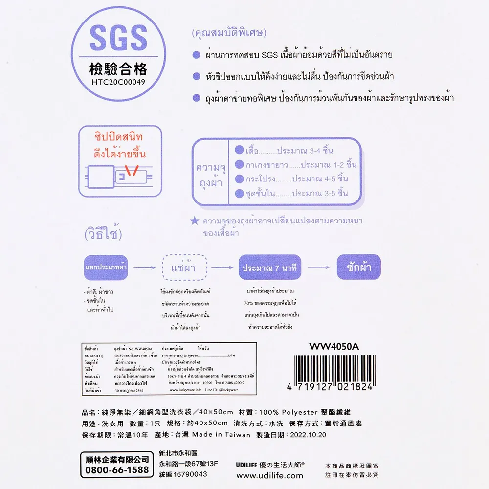 ยูดีไอไลฟ์ ถุงตาข่ายสำหรับซักผ้า รุ่น WW4050A ขนาด 40 x 50 ซม.