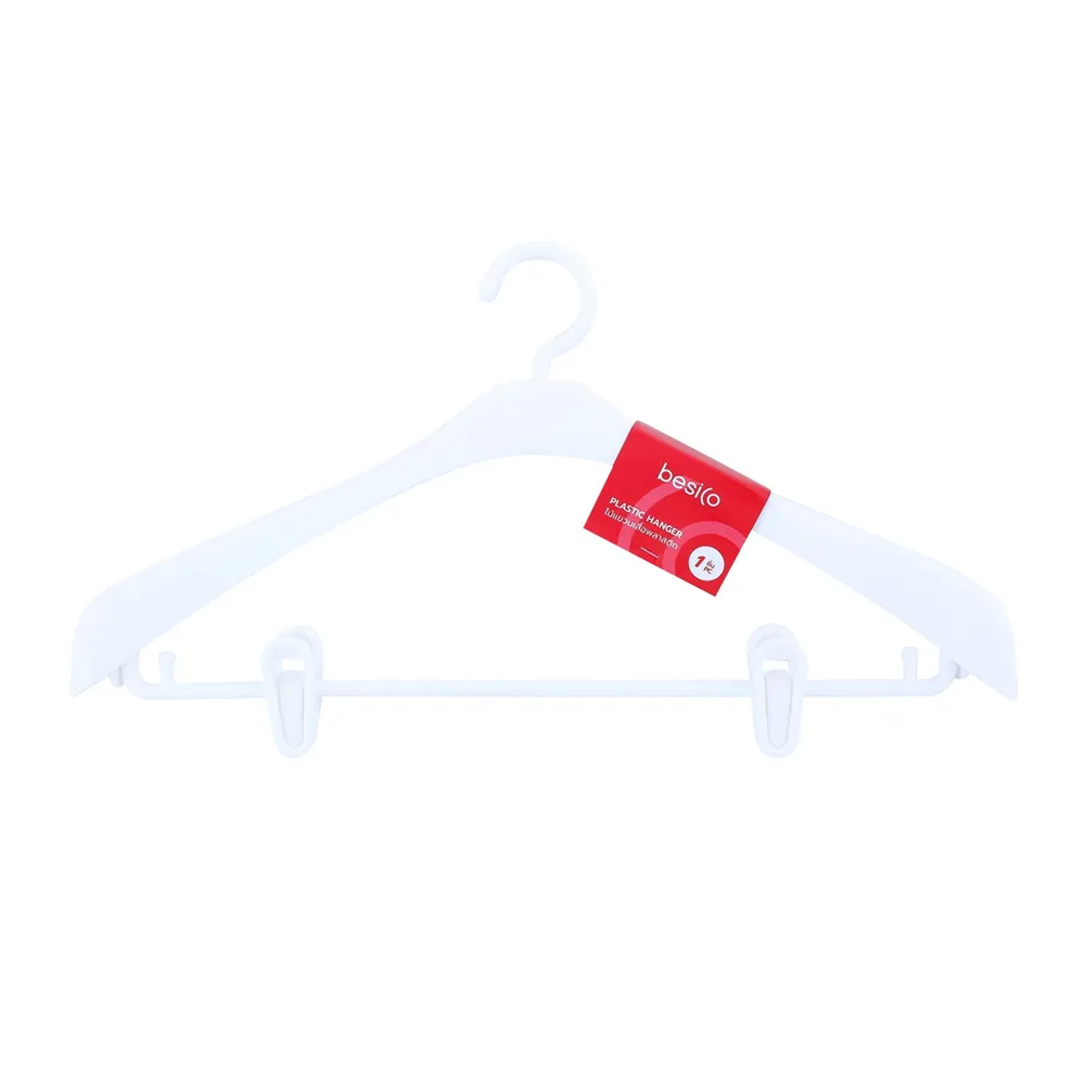 เบสิโค ไม้แขวนพลาสติก + ที่หนีบ สีขาว