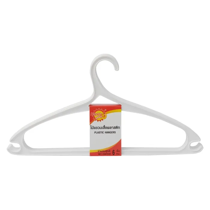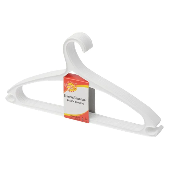 แฮปปี้ ไพรซ์ ไม้แขวนเสื้อพลาสติก เบอร์ 1172 สีขาว แพ็ค 6