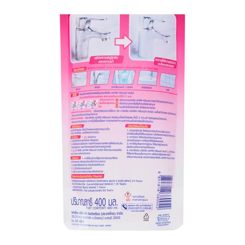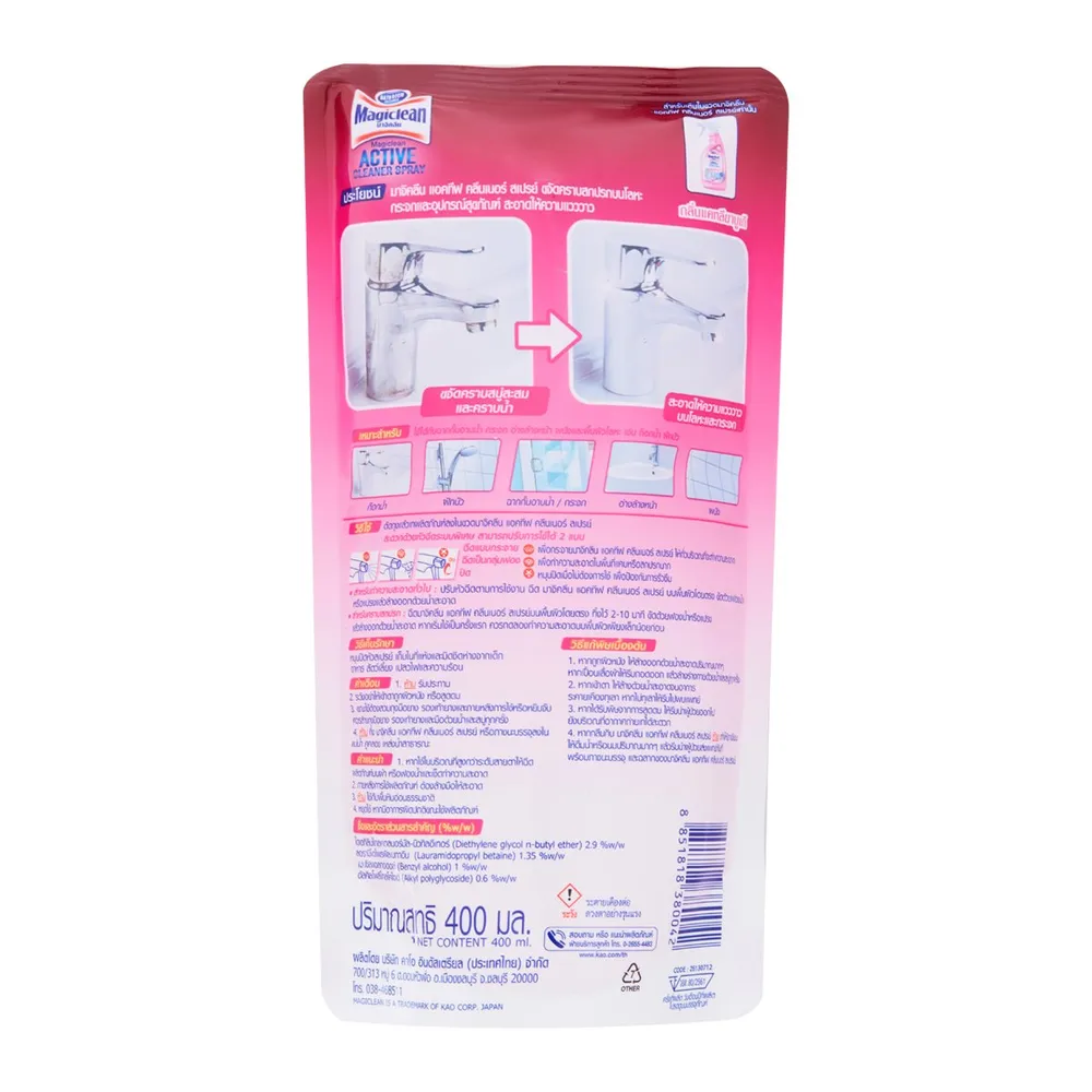 มาจิคลีน น้ำยาทำความสะอาดห้องน้ำ กลิ่นฟรีเซียเทนเดอร์ ถุงเติม 400 มล.
