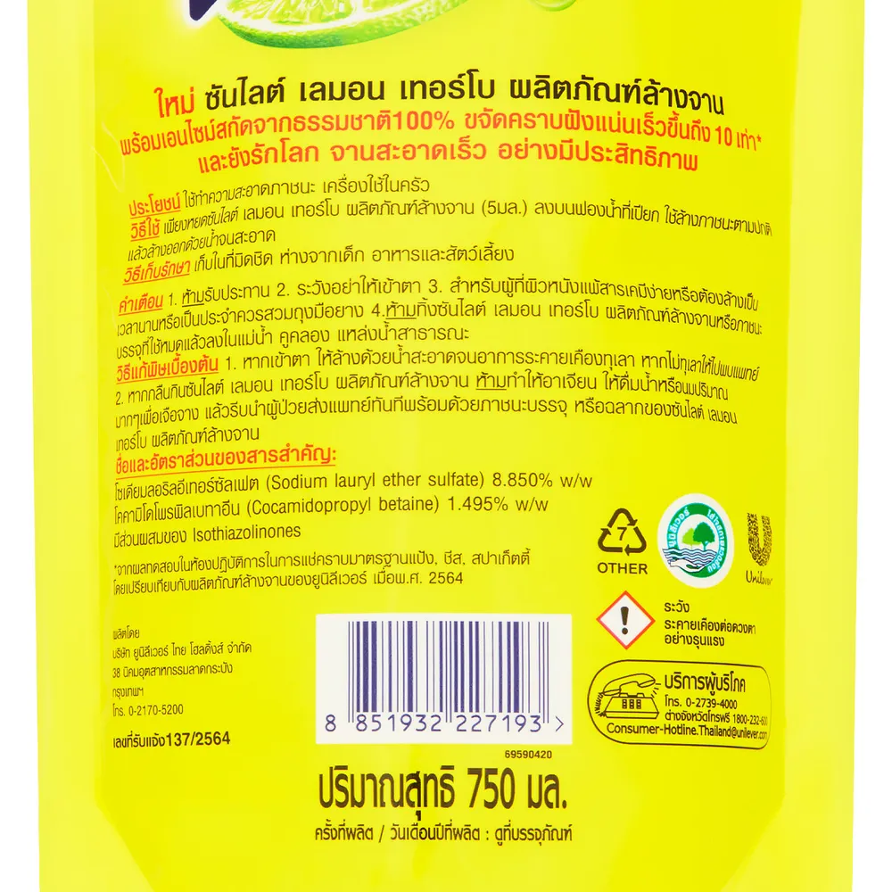 ซันไลต์ เลมอน เทอร์โบ น้ำยาล้างจาน 750 มล.