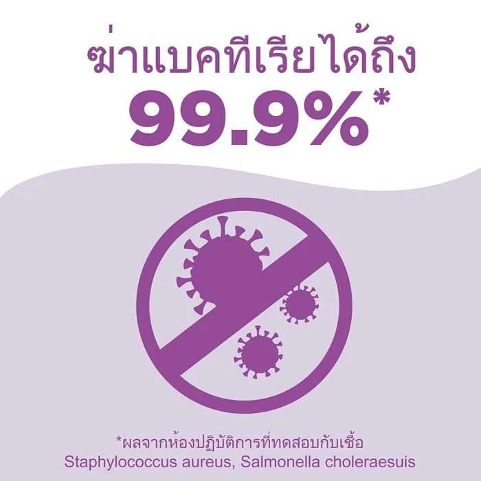 - มีประสิทธิภาพในการขจัดคราบสกปรกและขจัดเชื้อแบคทีเรียได้ถึง 99.99% รวมถึงเชื้อไวรัส H1N1 หากทิ้งไว้ราว 10 นาที ก่อนจะล้างออก ส่วนประกอบออกฤทธิ์ของผลิตภัณฑ์จะช่วยขจัดคราบสกปรกโดยทั่วไปที่ก่อตัวขึ้นในระหว่างสัปดาห์<br />
