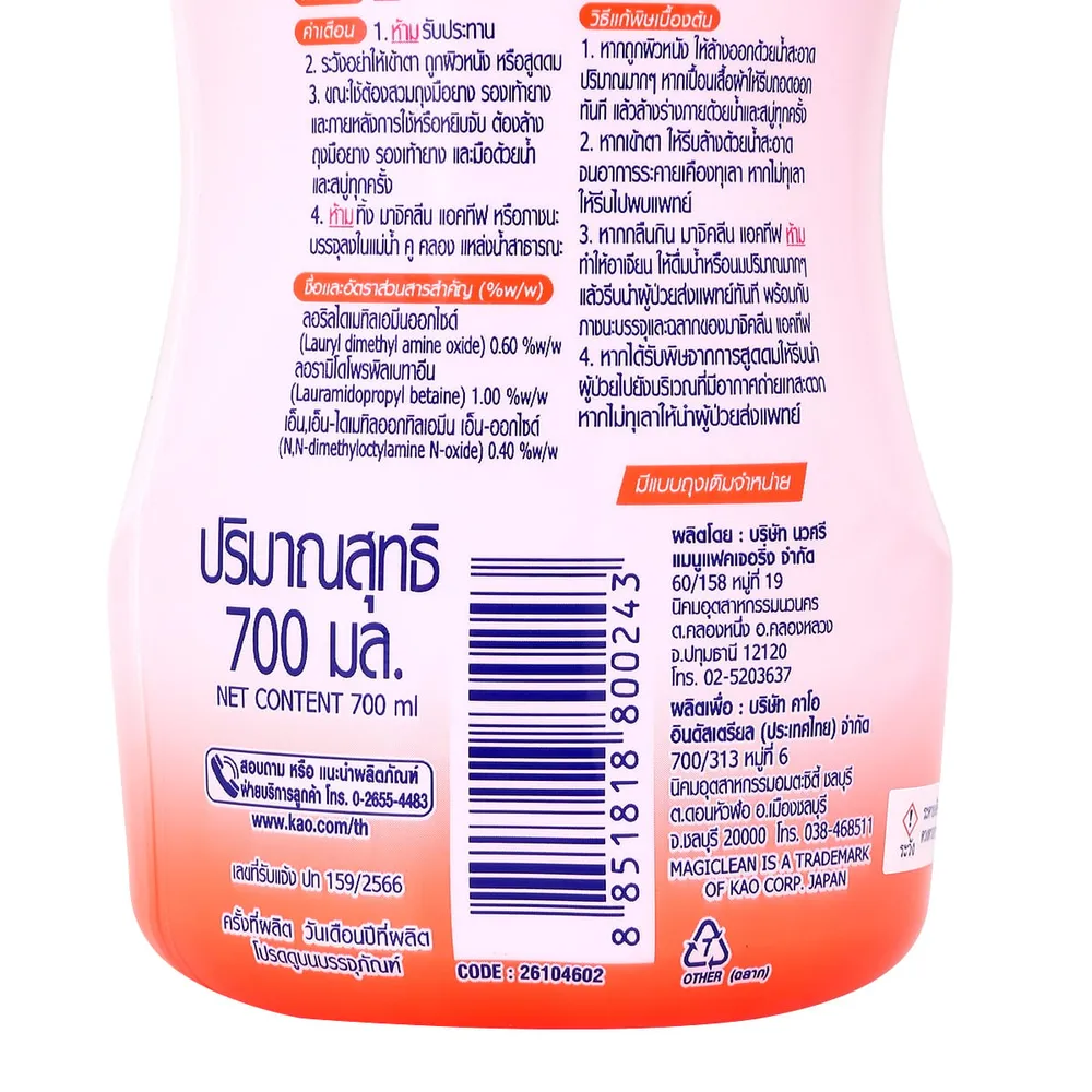 มาจิคลีน แอคทีฟ ผลิตภัณฑ์ทำความสะอาดห้องน้ำ โรซี่ เทนเดอร์ 700 มล.