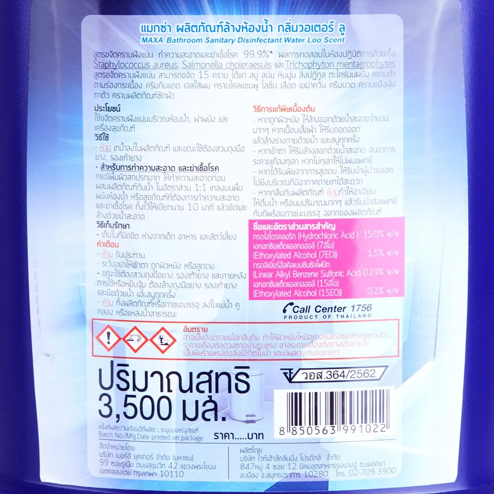 แมกซ่า ผลิตภัณฑ์ล้างห้องน้ำ กลิ่นวอเตอร์ ลู 3500 มล.