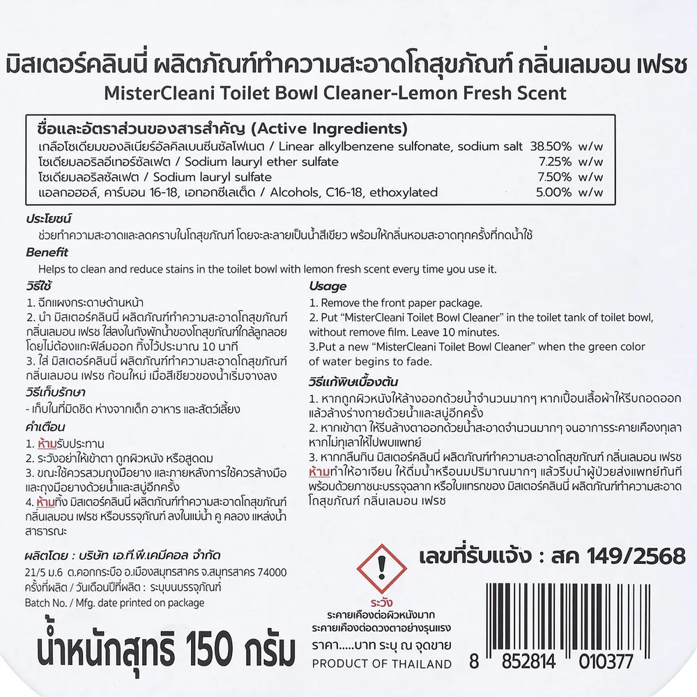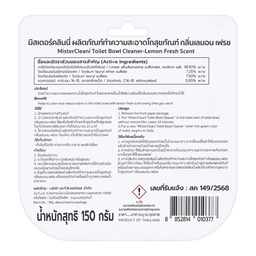 มิสเตอร์คลินนี่ ผลิตภัณฑ์ทำความสะอาดโถสุขภัณฑ์ กลิ่นเลมอน เฟรช 150 ก.