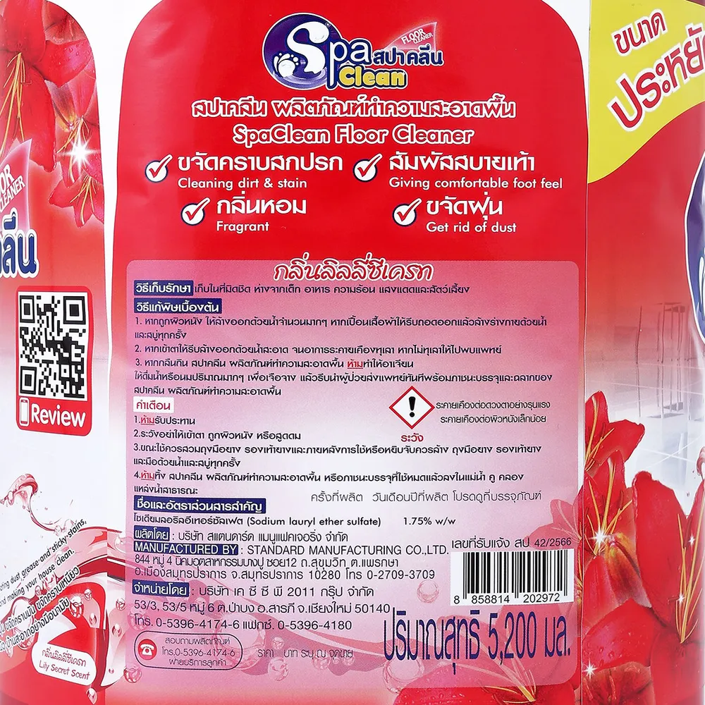 <p>สปาคลีน ผลิตภัณฑ์น้ำยาทำความสะอาดพื้น กลิ่นลิลลี่ซีเครท<br />