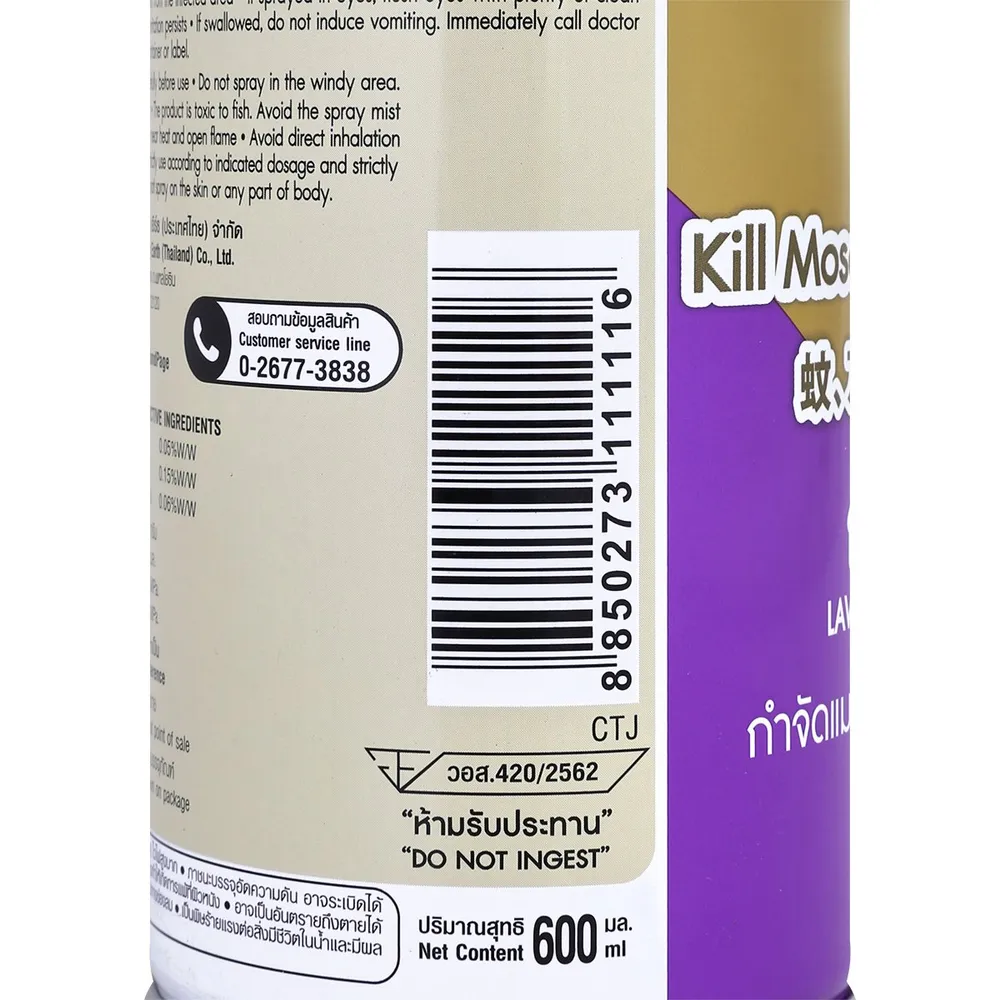 - อาท เจ็ทโกลด์ สเปรย์กำจัดแมลง ยุง มด แมลงสาบ กลิ่นลาเวนเดอร์ ขนาด 600 มิลลิลิตร<br />