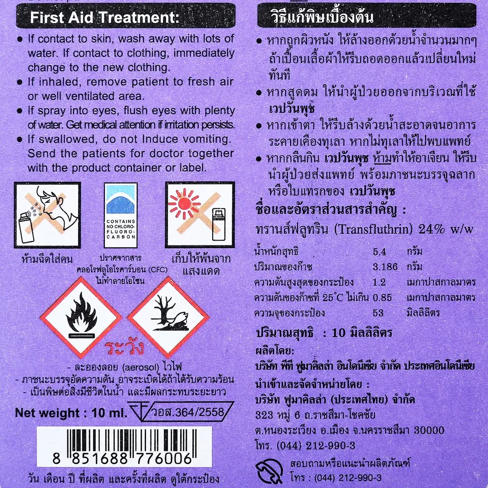 - 1 ครั้ง สามารถกำจัดยุงได้นาน 12 ชั่วโมง<br />
