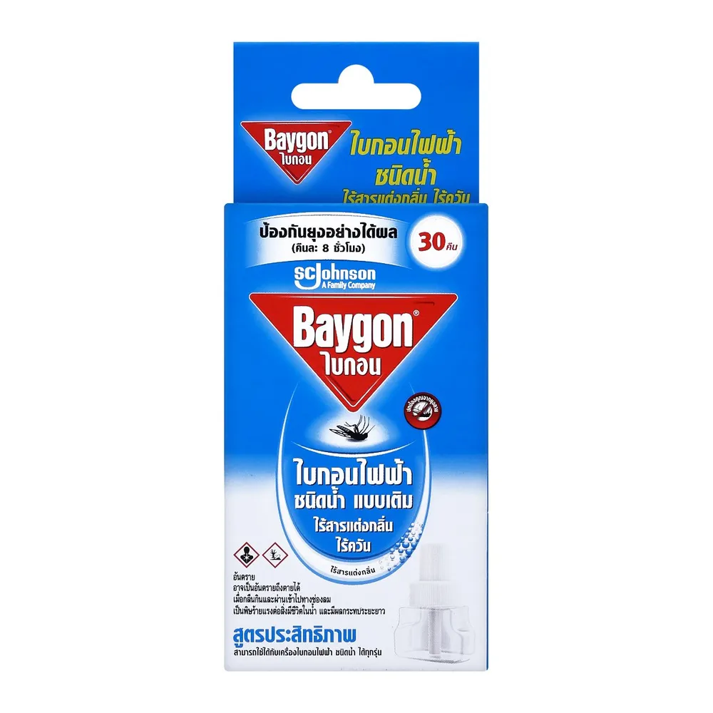 <p>ไบกอน รีฟิล สำหรับเครื่องไล่ยุงไฟฟ้า ชนิดน้ำ แบบเติม ไร้สารแต่งกลิ่น 21.9 มล.<br />