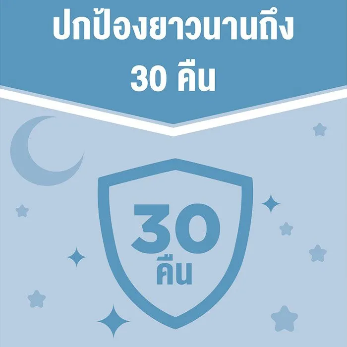 - สูตรประสิทธิภาพ ปกป้องต่อเนื่องยาวนานถึง 30 คืน (8 ชั่วโมงต่อคืน)<br />