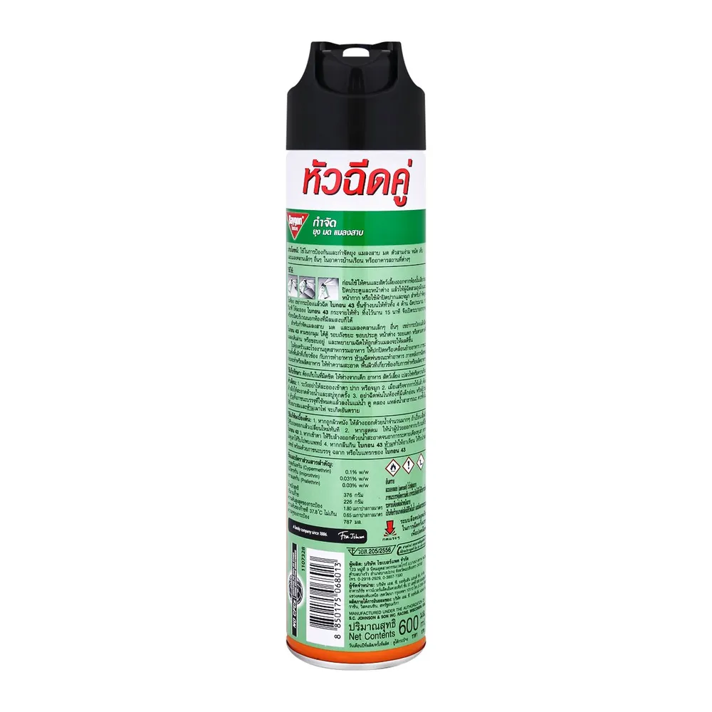 - วิธีใช้ ก่อนใช้ให้คนและสัตว์เลี้ยงออกจากห้องนั้นเสียก่อน ปิดประตูและหน้าต่าง แล้วให้ผู้ฉีดสวมถุงมือและหน้ากาก หรือใช้ผ้าปิดปากและจมูก<br />