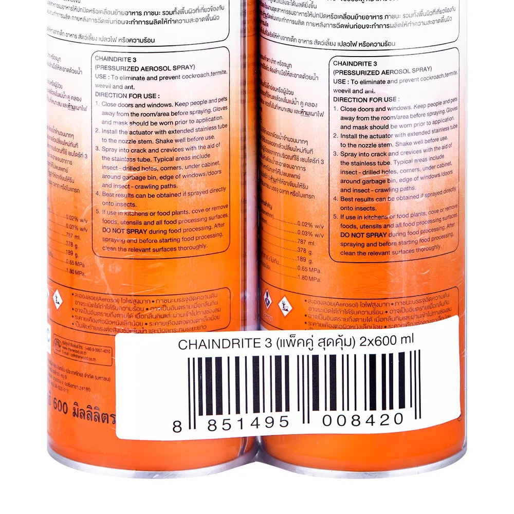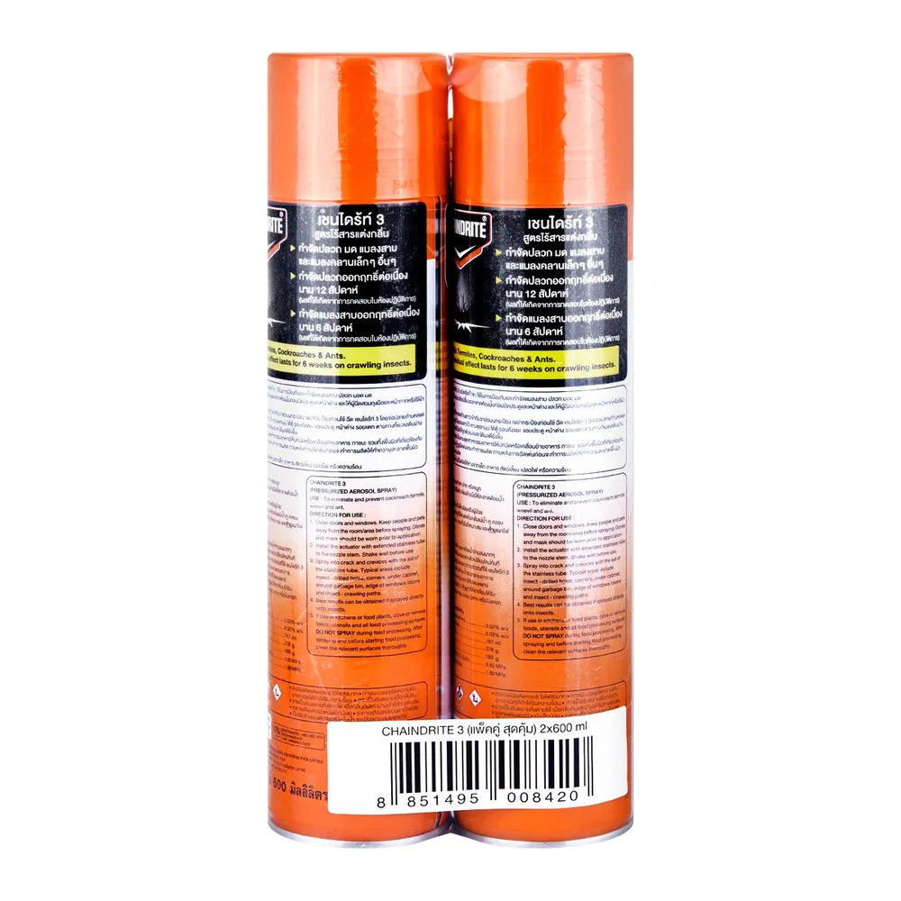 เชนไดร้ท์ 3 สเปรย์ป้องกันและกำจัดปลวก มอด มด แมลงสาบ สูตรไร้สารแต่งกลิ่น 600 มล. แพ็คคู่
