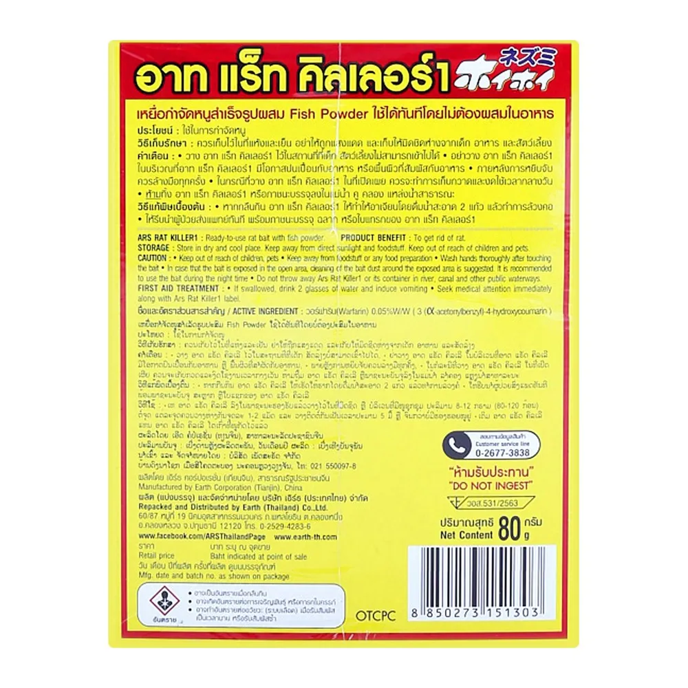 <p>อาท แร็ท คิลเลอร์ 1 เหยื่อกำจัดหนูสำเร็จรูปผสม Fish Powder<br />