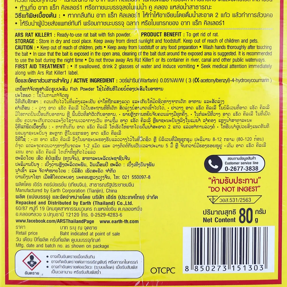 อาท แร็ท คิลเลอร์ 1 เหยื่อกำจัดหนูสำเร็จรูปผสม Fish Powder 80 ก.