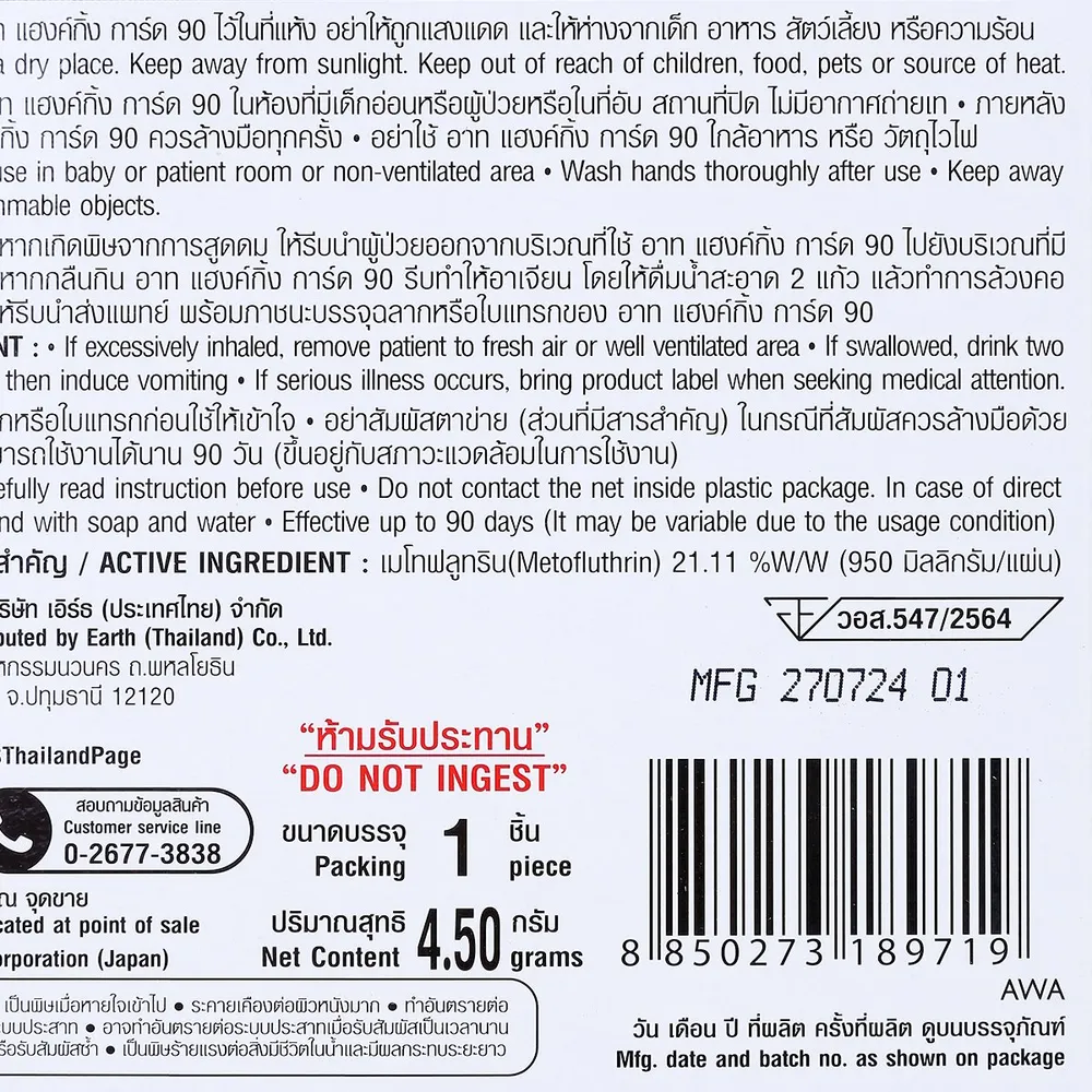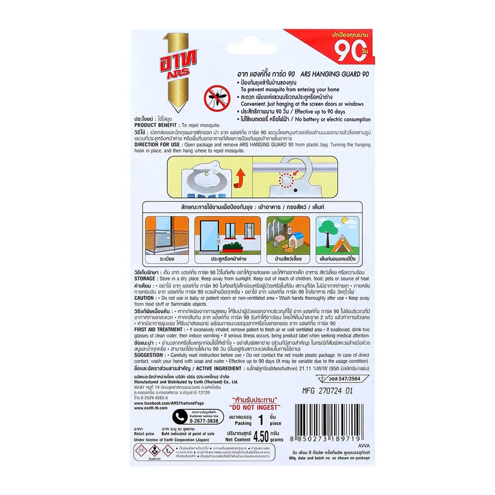 - อาท แฮงค์กิ้ง การ์ด 90 ตาข่ายแขวนไล่ยุง ไร้สารแต่งกลิ่น<br />
