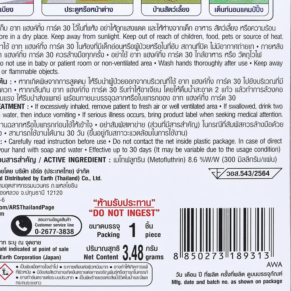 อาท แฮงกิ้ง การ์ด ตาข่ายแขวนไล่ยุงพิงค์บลอสซั่ม 3.48 ก.
