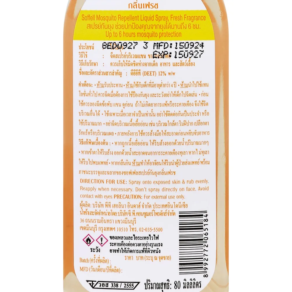 - สเปรย์กันยุง กลิ่นเฟรช ขนาด 80มิลลิลิตรจากซอฟเฟลล<br />
