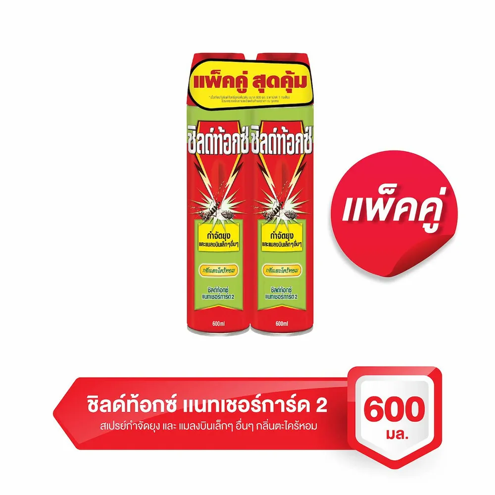<p>ชิลด์ท้อกซ์ แนทเชอร์การ์ด 2 สเปรย์กำจัดแมลง กลิ่นตะไคร้หอม 600 มล. แพ็ค 2<br />