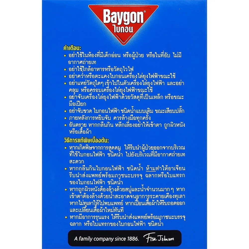 ไบกอน เครื่องไล่ยุงไฟฟ้าชนิดน้ำ กลิ่นยูคาลิปตัส ป้องกันคุณจากยุงร้ายพร้อมไร้ควันรบกวน สามารถใช้ในห้องต่างๆ ที่มีอากาศถ่ายเทสะดวกได้ ต่างจากยาจุดกันยุงแบบขด<br />