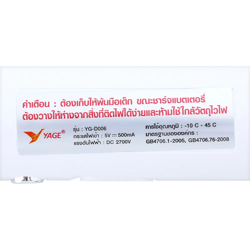 <p>YAGE ไม้ตียุงชาร์จไฟ สาย USB รุ่น YG-D006<br />