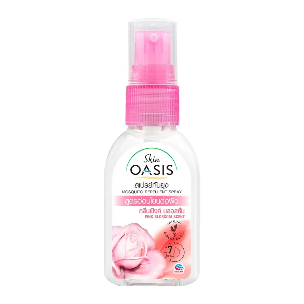 โอเอซิส สกิน สเปรย์กันยุง กลิ่นพิงค์บลอสซั่ม ไล่ยุงด้วยสารสกัดจากธรรมชาติ น้ำมันลาเวนเดอร์และยูคาลิปตัส ปกป้องจากยุงนาน 7 ชั่วโมง สูตรอ่อนโยนต่อผิว และผ่านการทดสอบทางผิวหนังจากประเทศญี่ปุ่น<br />