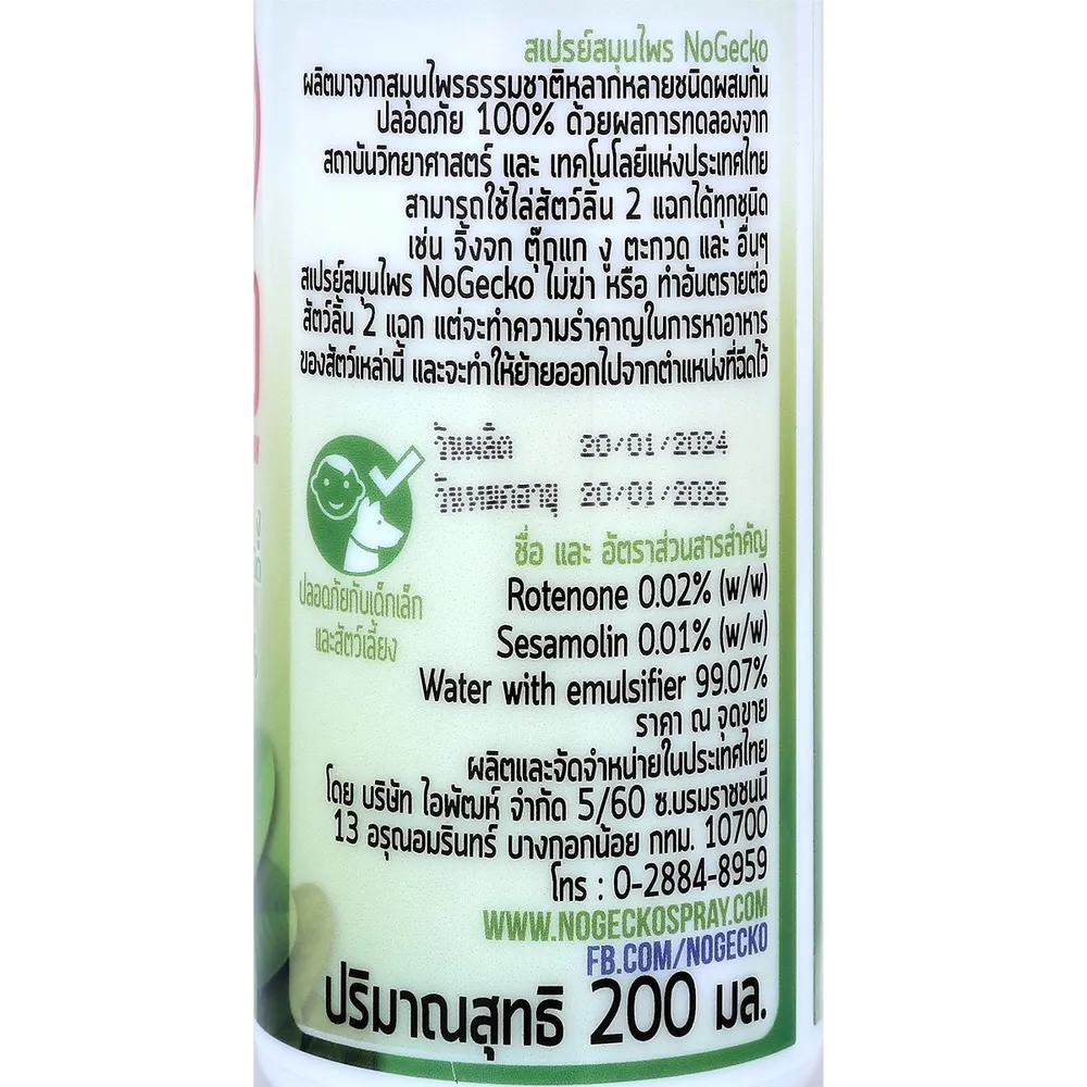 โนเก็กโค่ สเปรย์สมุนไพร ไล่จิ้งจก ตุ๊กแก งู และสัตว์ลิ้น 2 แฉก ทุกชนิด กลิ่นตะไคร้หอม 200 มล.