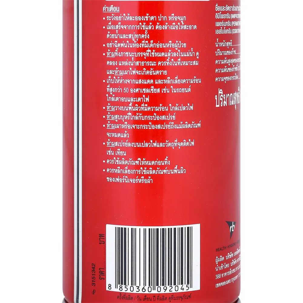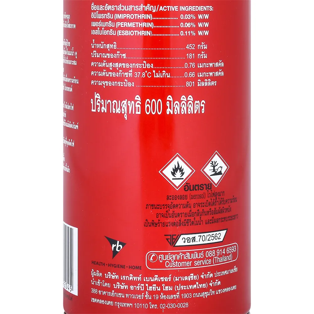 - สำหรับกำจัดยุงที่บินอยู่ในห้อง ก่อนใช้ให้คนและสัตว์เลี้ยงออกจากห้องนั้นก่อน ปิดประตูและหน้าต่าง และให้ผู้ฉีดสวมถุงมือและหน้ากาก หรือใช้ผ้าปิดปากและจมูก เขย่ากระป๋อง แล้วฉีดขึ้นด้านบนห้องทั้ง 4 ด้าน ฉีดประมาณ 15 วินาที ให้ละอองสเปรย์กระจายให้ทั่ว ทิ้งไว้ 15 นาที จึงเปิดระบายอากาศ หรือจะฉีดบริเวณนอกห้องที่ลมสงบก็ได้<br />