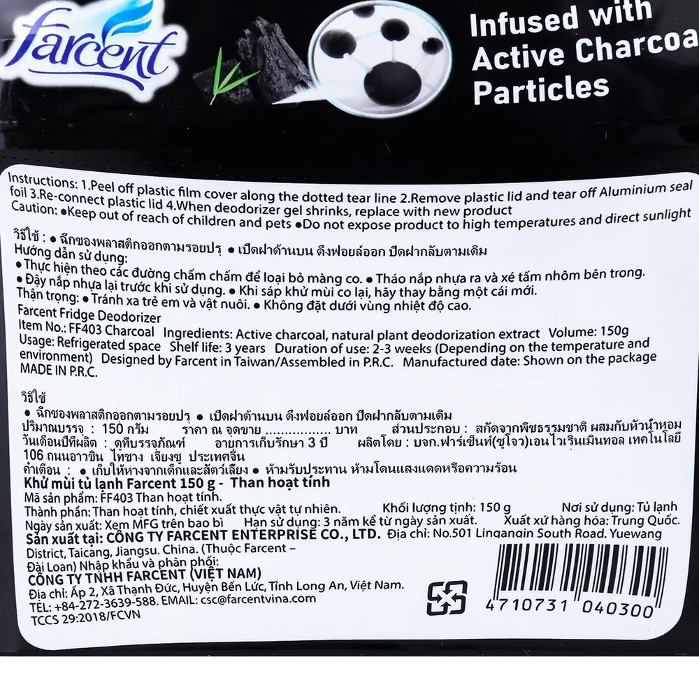 - เจลถ่านขจัดกลิ่น ฟาร์เซนต์ สำหรับตู้เย็น ขนาด 150 กรัม<br />