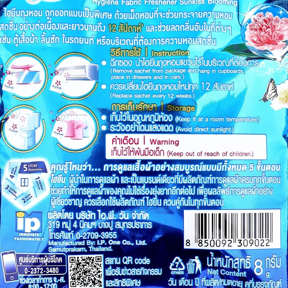 ไฮยีน ผลิตภัณฑ์ถุงหอม กลิ่นซันคิส บลูมมิ่ง บลูม 8 ก.