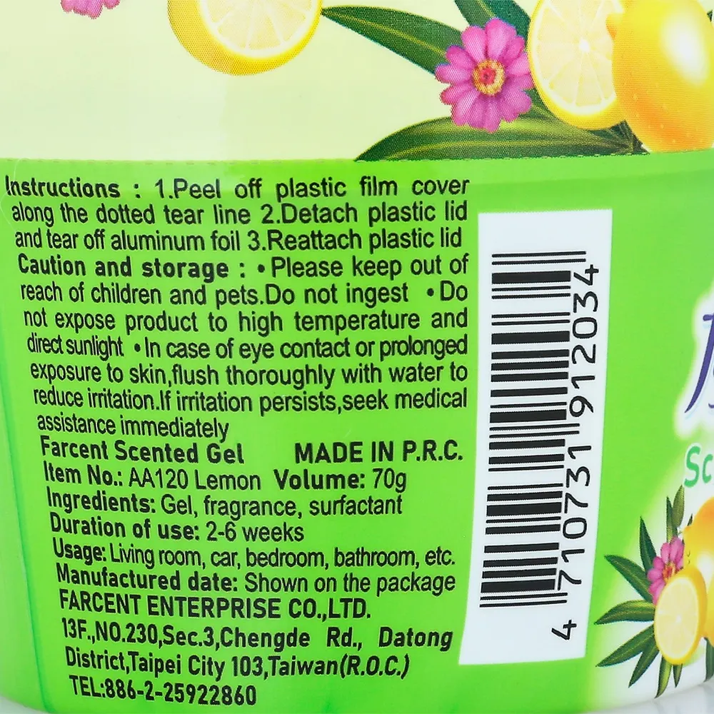 เจลน้ำหอม กลิ่นเลมอน ขนาด 70 ก. แบรนด์ ฟาร์เซ็นท์ (FARCENT) น้ำหอม<wbr />ปรับอากาศชั้นดี นำเข้าจากประเทศไต้หวัน นำกลิ่นหอมธรรมชาติจากป่าสู่บ้านคุณ<br />