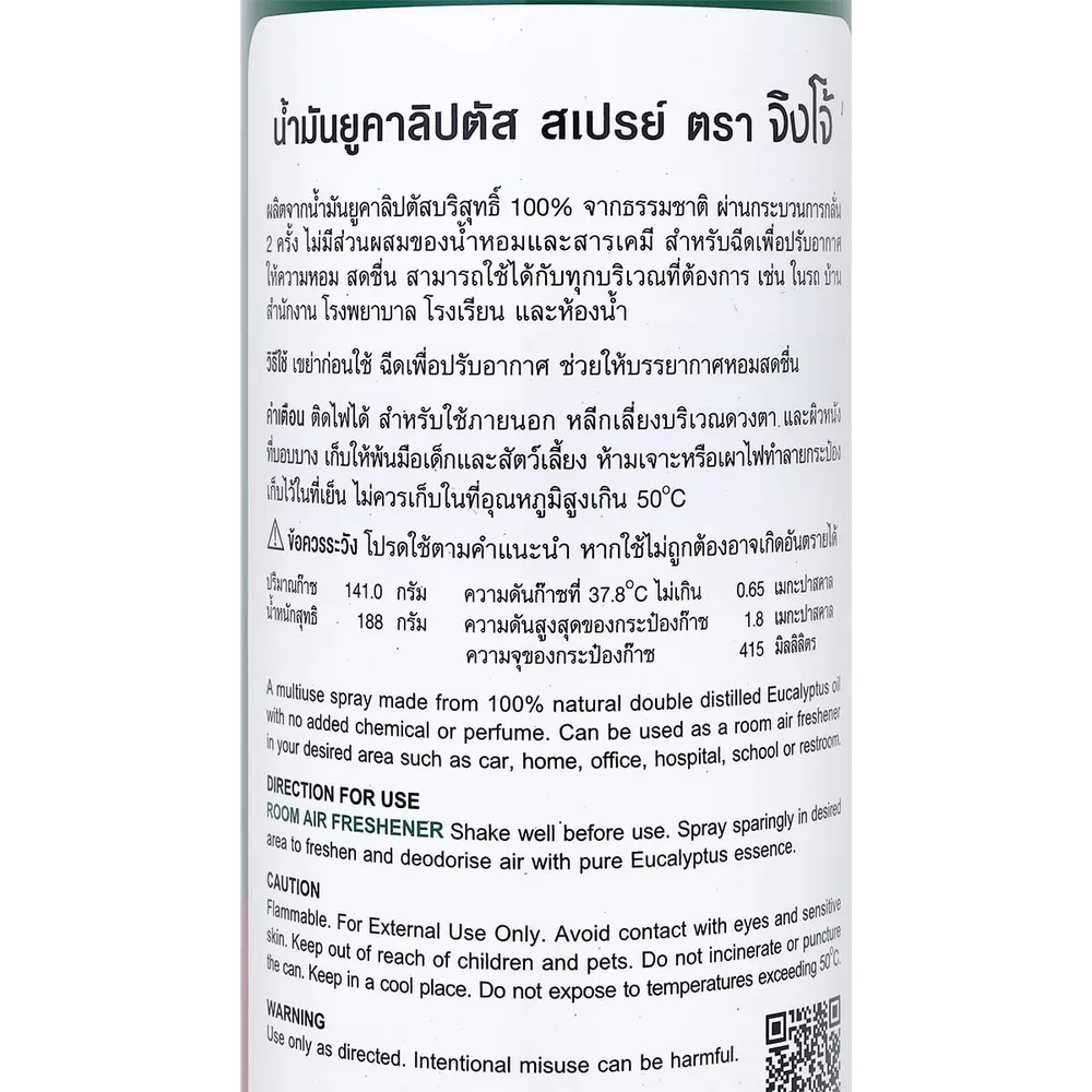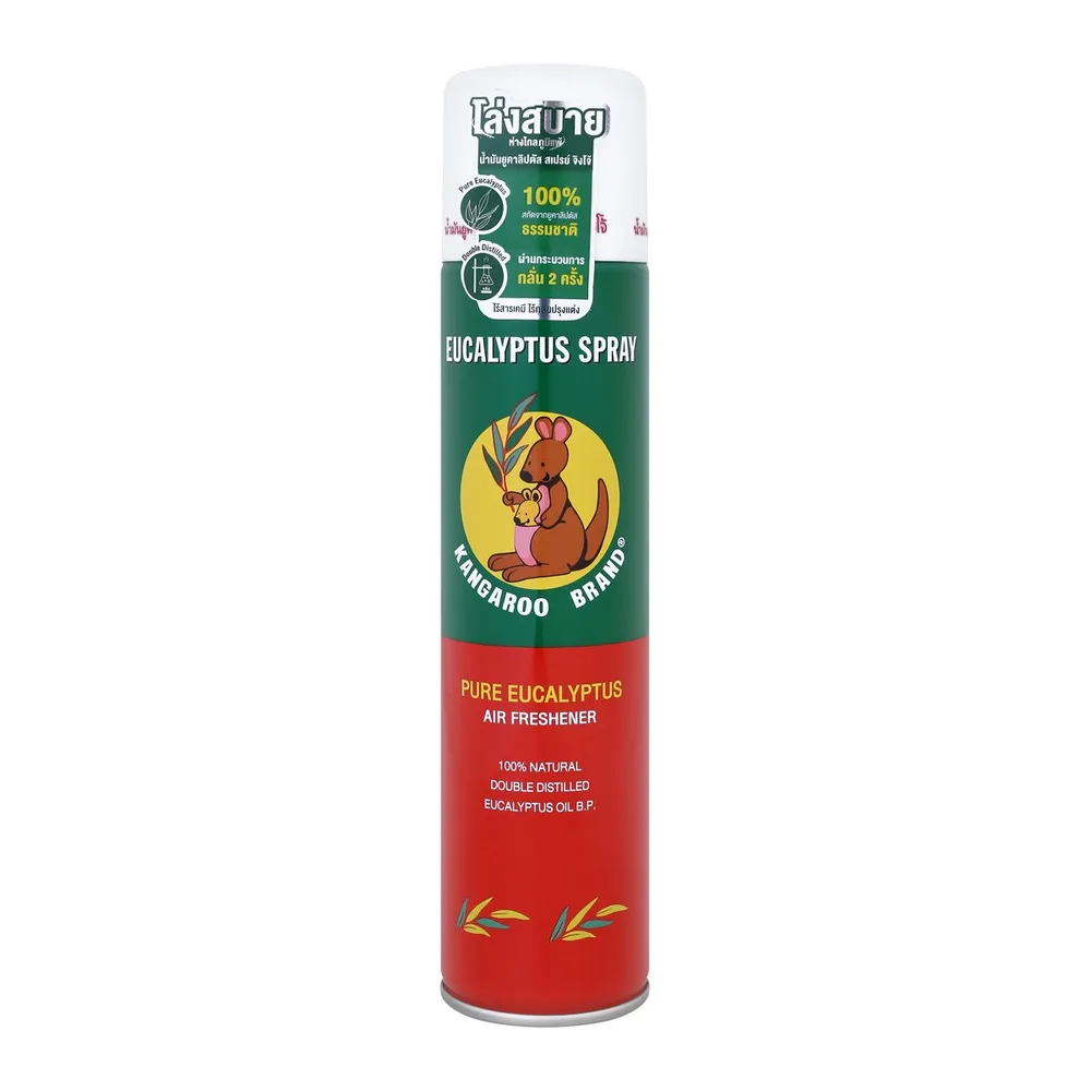 ตราจิงโจ้ สเปรย์น้ำมันยูคาลิปตัส ช่วยให้หายใจโล่ง สบาย ผ่อนคลาย ด้วยส่วนผสมหลักสกัดจากน้ำมันยูคาลิปตัสธรรมชาติ 100% ที่ผ่านการกลั่นสองครั้ง อีกทั้งยังช่วยปรับอากาศ ยังช่วยลดการคัดจมูก ภูมิแพ้จากหวัด อาการแสบจมูก และแสบคอ ไม่มีน้ำหอมเจือปน ปลอดภัยและอ่อนโยนต่อเด็ก<br />