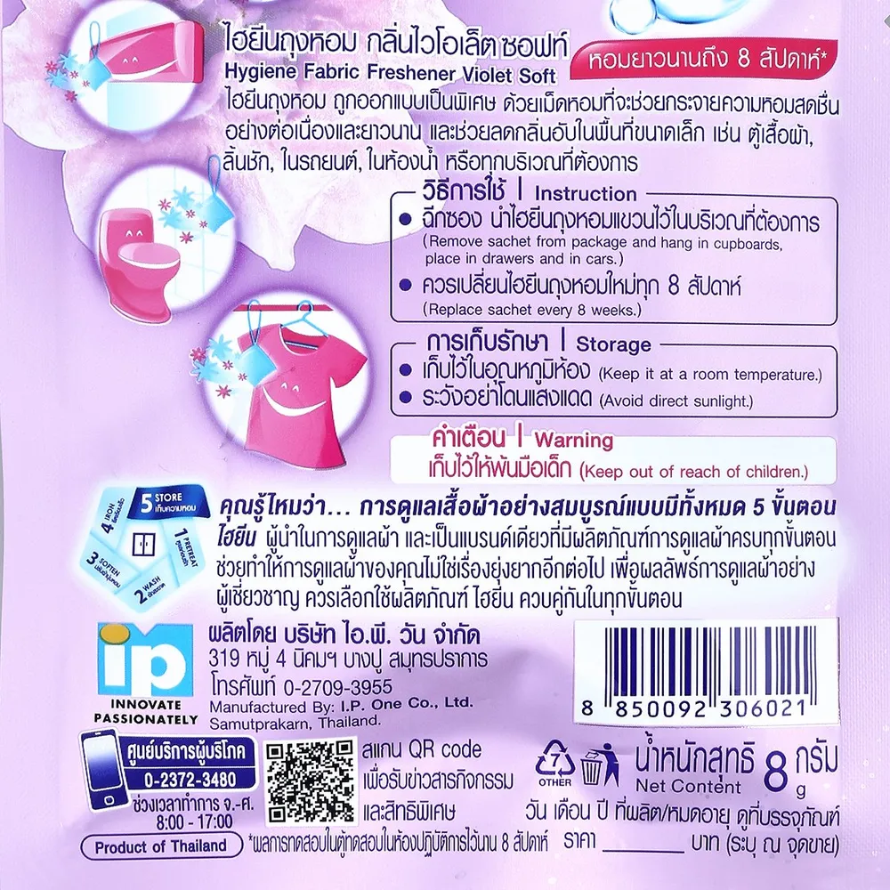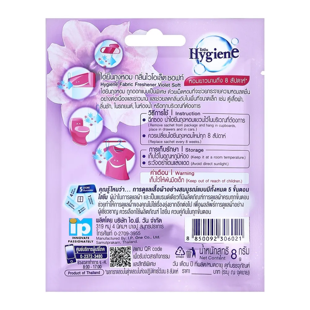 ไฮยีน ผลิตภัณฑ์ถุงหอม กลิ่นไวโอเล็ตซอฟท์ 8 ก.