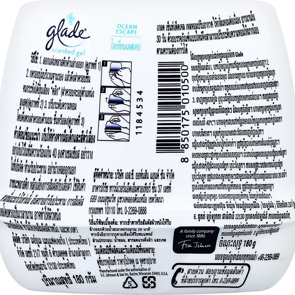 เกลด เซ็นท์เต็ด เจลหอมปรับอากาศ กลิ่นโอเชี่ยน เอสเคป 180 ก.