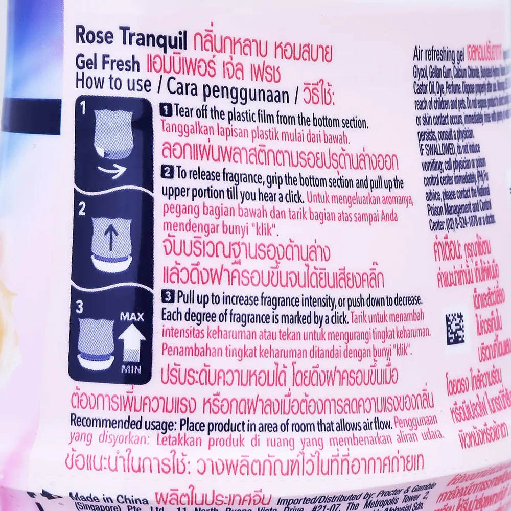 - แอมบิเพอร์ เบดรูม คอลเลคชั่น เจลหอมปรับอากาศ กลิ่นโรส ทรานควิน<br />
