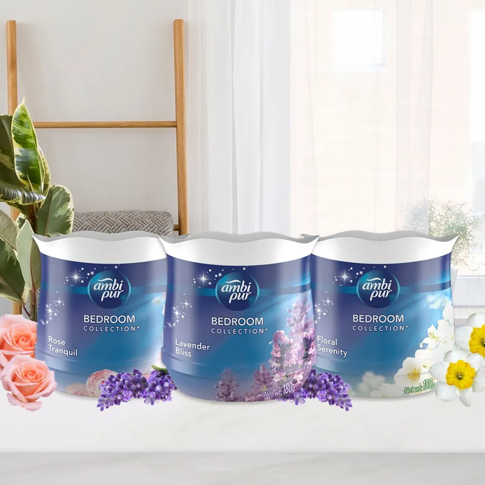 <p>แอมบิเพอร์ เบดรูม คอลเลคชั่น เจลหอมปรับอากาศ กลิ่นโรส ทรานควิน<br />