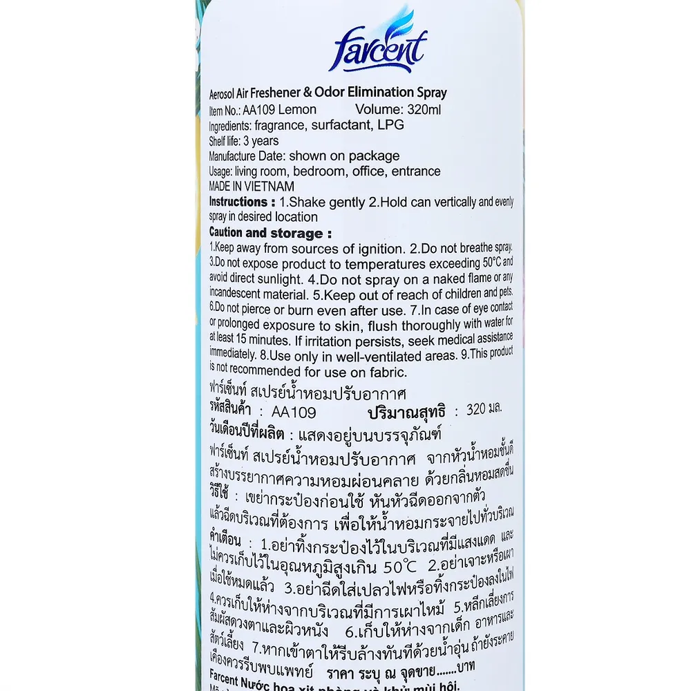 ฟาร์เซ็นท์ สเปรย์น้ำหอมปรับอากาศ กลิ่นเลมอน 320 มล.