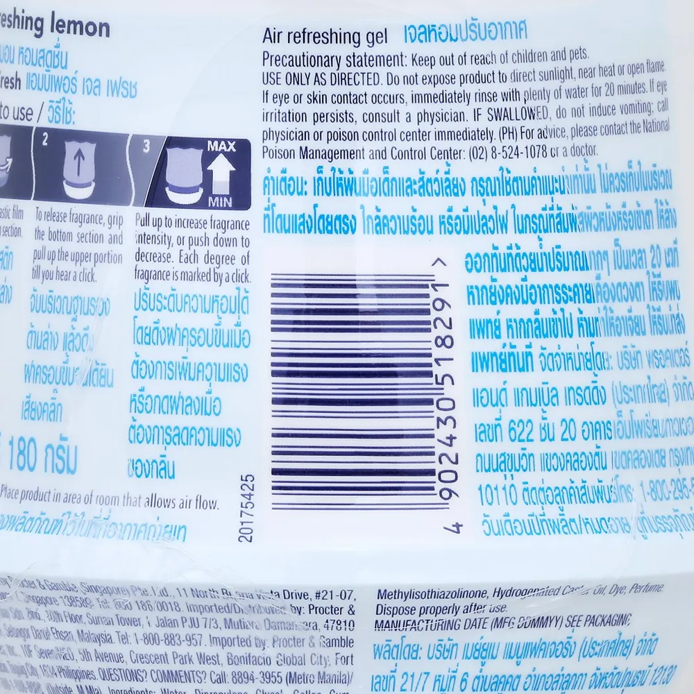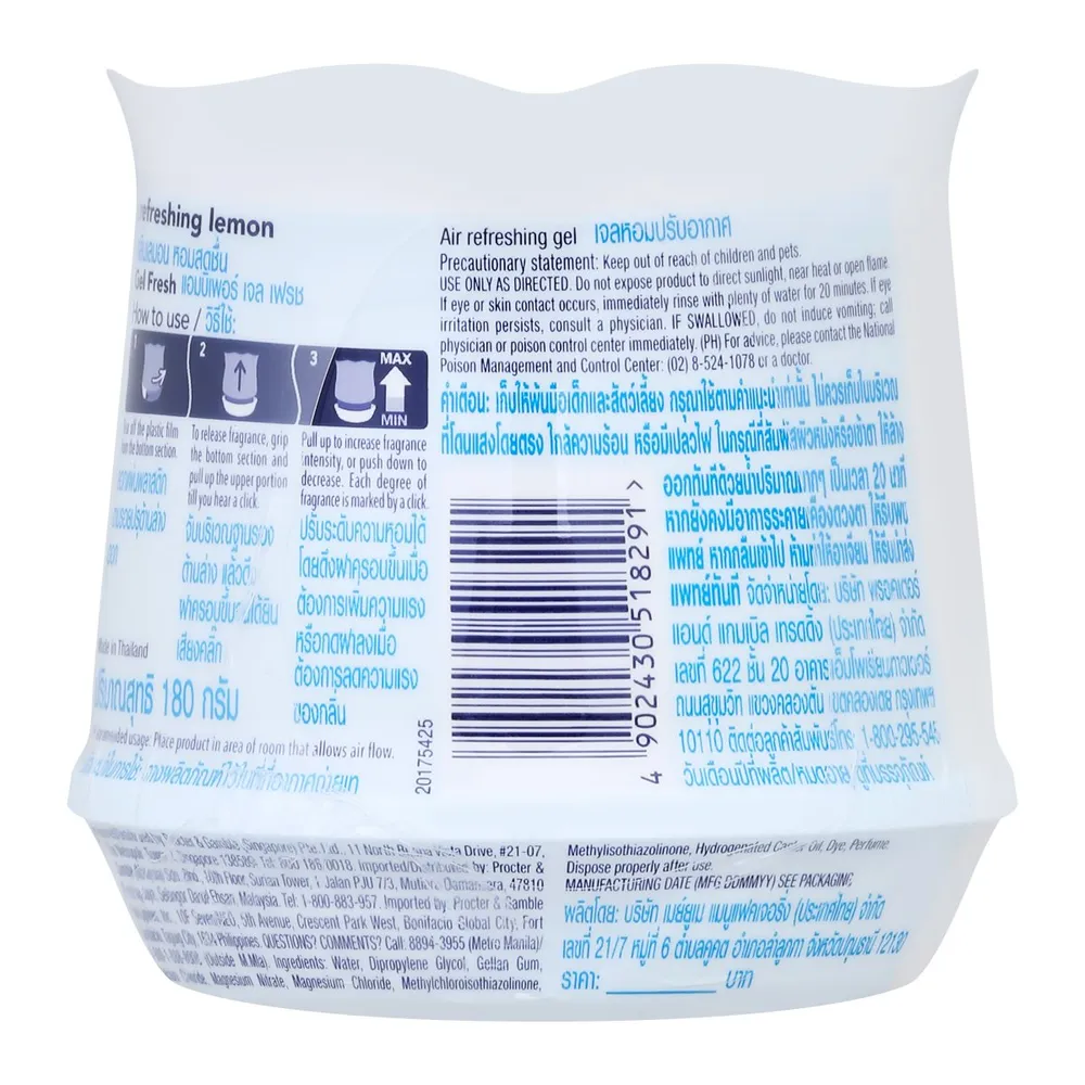 <p>แอมบิเพอร์ เจลน้ำหอม เลมอน<br /> <br /> ผลิตภัณฑ์ปรับอากาศภายในบ้าน เจลหอมปรับอากาศ เจลน้ำหอม เลมอน กลิ่นหอมผ่อนคลายผสานกับกลิ่นหอมเย้ายวนของโรสแมรี่ ดีไซน์สวย เข้ากับทุกที่ภายในบ้าน ช่วยฟอกอากาศที่เป็นพิษ&nbsp;ดักจับแบคทีเรียในอากาศ<br /><br />- เจลน้ำหอม<br /> - ขจัดดับกลิ่นไม่พึงประสงค์<br /> - ช่วยเพิ่มความหอมสดชื่น<br />- จำนวนบรรจุ: 2 หน่วย<br /> <br /> *ภาพประกอบใช้เพื่อการโฆษณาเท่านั้น</p>