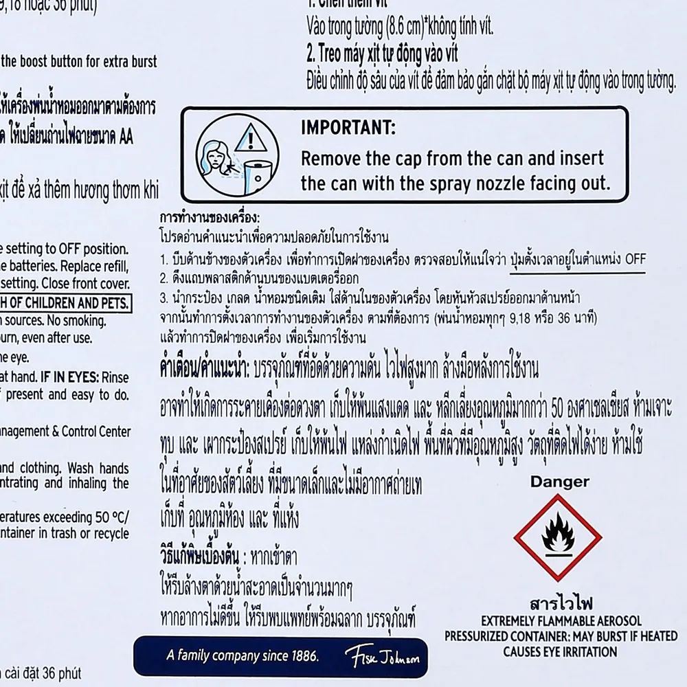 - ละอองสเปรย์กลิ่นหอมที่อ่อนโยนต่อเนื่องยาวนานถึง 60 วัน หากปรับระดับช่วงความถี่ในการฉีดสเปรย์ทุกๆ 36 นาที<br />