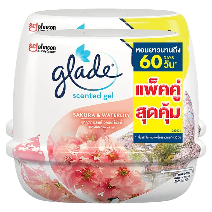 เปลี่ยนห้องหรือบ้านของคุณให้มีกลิ่นหอมหวาน ไร้กังวลจากกลิ่นไม่พึงประสงค์ ด้วยเกลด เซ็นเต็ด เจล ซากุระ แอนด์ วอเตอร์ ลินลี่ ที่สามารถฟุ้งกระจายความหอมได้ยาวนานต่อเนื่องถึง 30 วัน พร้อมกับสามารถปรับระดับความหอมมากน้อยได้ตามต้องการ<br />