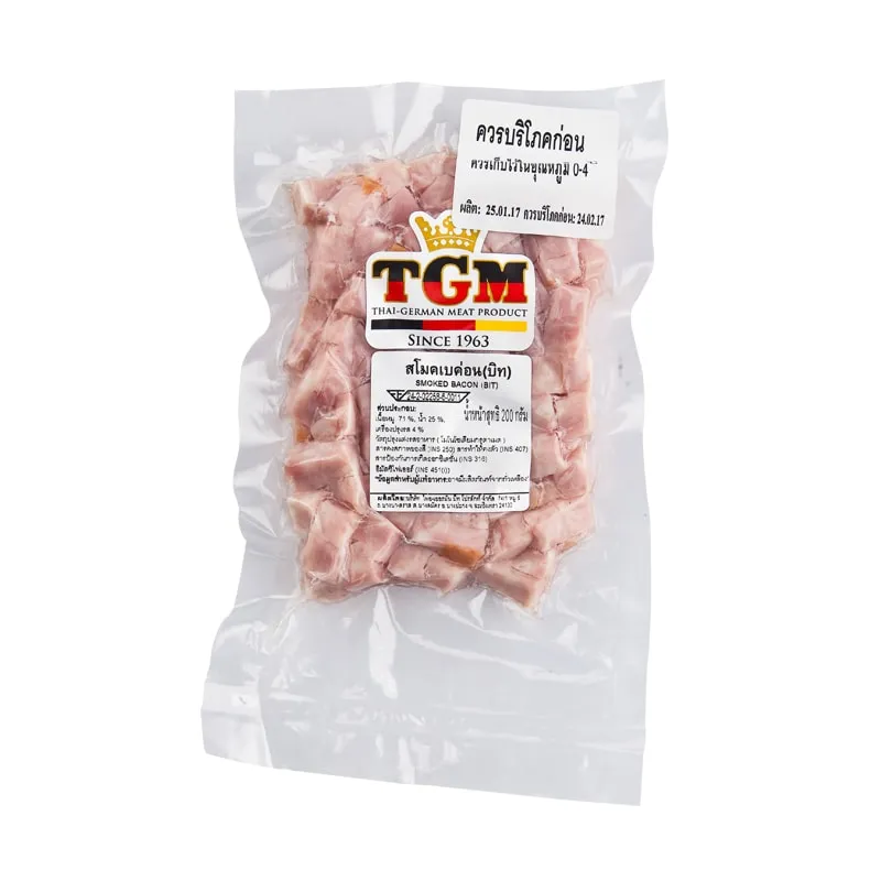 <p>ทีจีเอ็ม สโมคเบคอนบิท แพ็คละ<br /><br />ทีจีเอ็ม สโมคเบคอนบิท ผลิตภัณฑ์อาหารคุณภาพ ที่ผลิตจากวัตถุดิบคุณภาพดี สามารถรับประทานได้ง่ายและหลากหลาย ไม่ว่าจะเป็นกับแกล้ม หรือประกอบอาหาร ก็อร่อยเด็ดไม่แพ้กัน<br /><br />- ทีจีเอ็ม สโมคเบคอนบิท คุณภาพดี<br />- ผลิตภัณฑ์คุณภาพจากทีจีเอ็ม<br />- อาหารแปรรูปจากเนื้อสัตว์<br />- รสชาติอร่อย <br /><br />*ภาพประกอบใช้เพื่อการโฆษณาเท่านั้น</p>