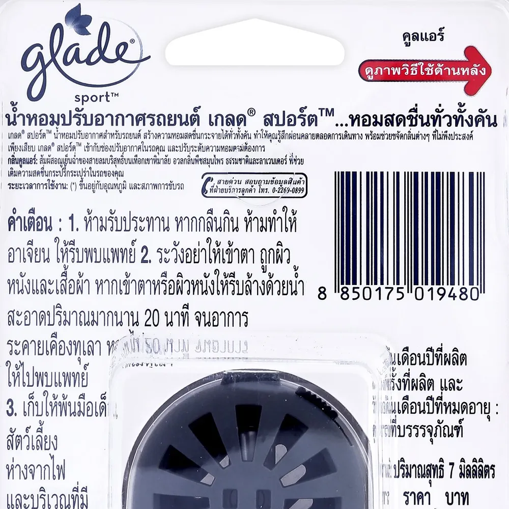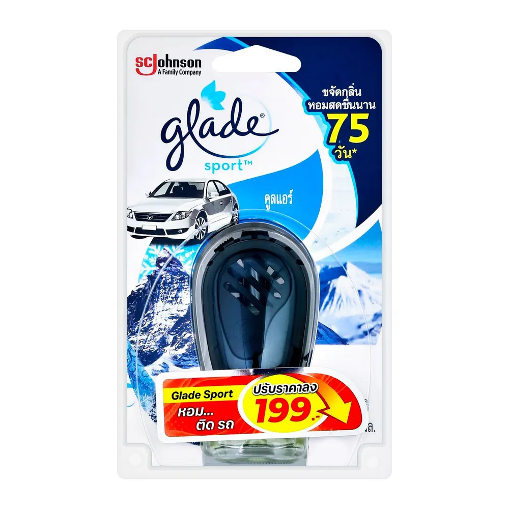 GLADE SPORT ผลิตภัณฑ์ปรับอากาศในรถยนต์ที่สามารถดูดซับและขจัดกลิ่นอันไม่พึงประสงค์ต่างๆ พร้อมทั้งสร้างความหอมสดชื่น ช่วยผ่อนคลาย หอมกระจายไปทั่วทั้งคันรถ ให้ทุกการเดินทางของคุณ มีความหอมสดชื่น มีความสุขไปทั้งวัน<br />