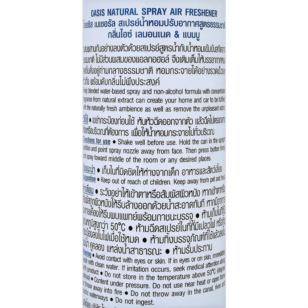 โอเอซิส เนเชอรัล สเปรย์น้ำหอม กลิ่นไอซ์ เลมอนเนด&แบมบู 320 มล.