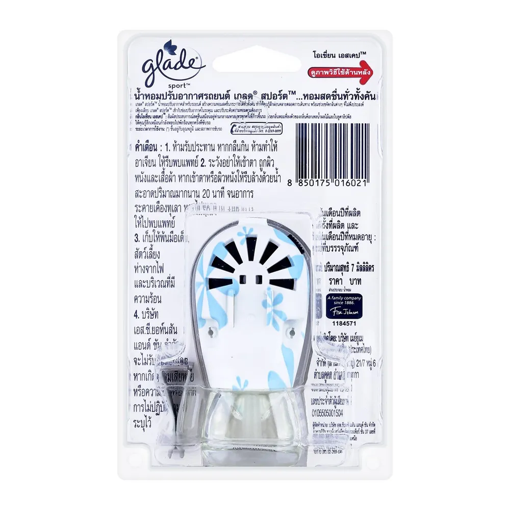 GLADE SPORT ผลิตภัณฑ์ปรับอากาศในรถยนต์ที่สามารถดูดซับและขจัดกลิ่นอันไม่พึงประสงค์ต่างๆ พร้อมทั้งสร้างความหอมสดชื่น ช่วยผ่อนคลาย หอมกระจายไปทั่วทั้งคันรถ ให้ทุกการเดินทางของคุณ มีความหอมสดชื่น มีความสุขไปทั้งวัน<br />