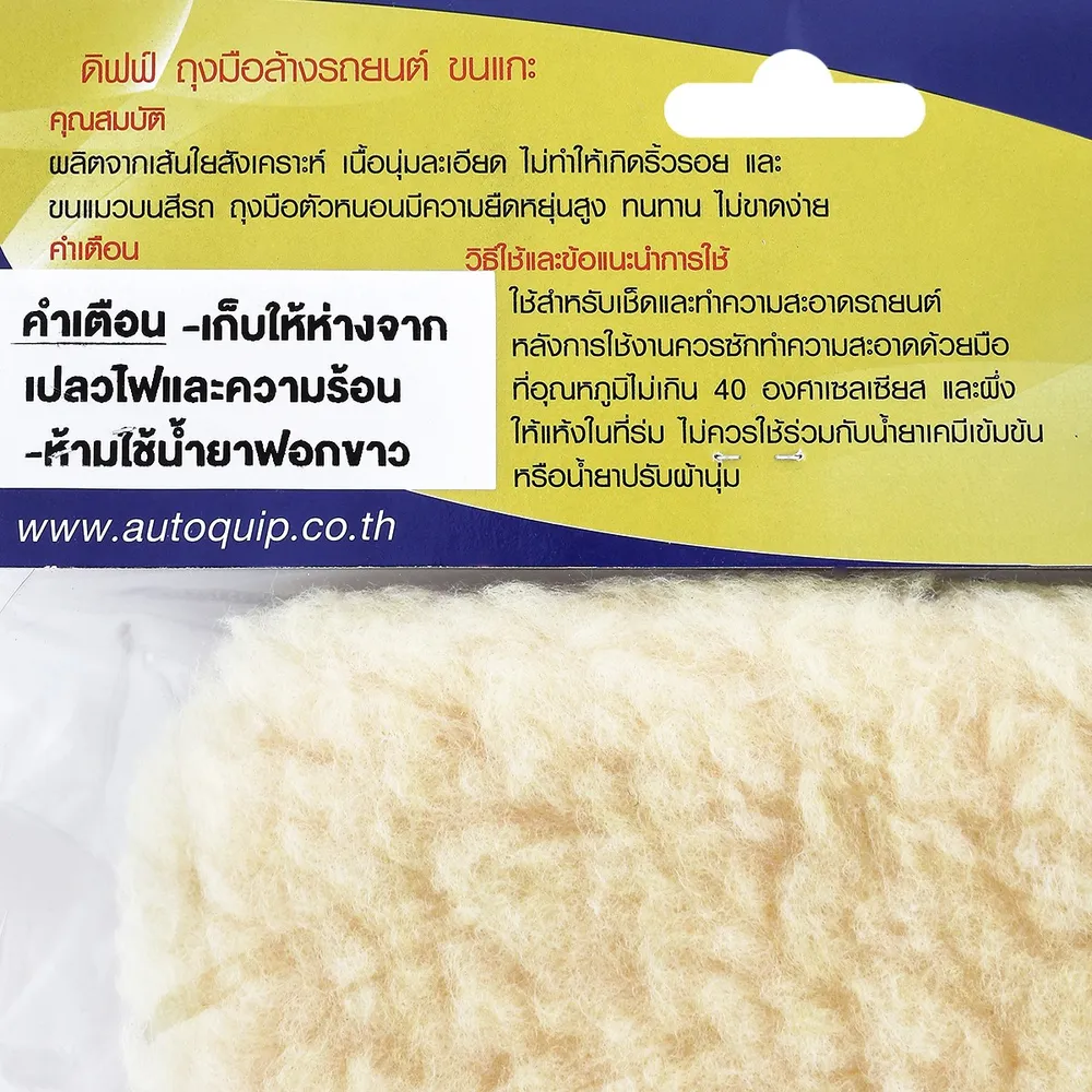 ดิฟฟ์ ถุงมือล้างรถขนแกะ ที่ผลิตจากเส้นใยสังเคราห์ เนื้อนุ่มละเอียด ไม่ทำให้เกิดริ้วรอย และขนแมวบนสีรถ ถุงมือตัวหนอนมีความยืดหยุ่นสูง ทนทาน ไม่ขาดง่าย<br />