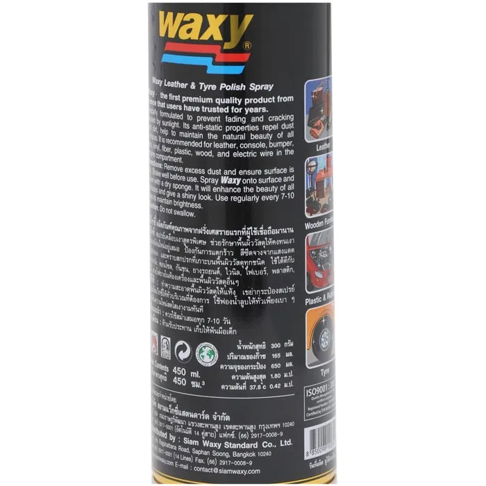 <p>แว๊กซี่&nbsp;สเปรย์เคลือบเงา 450 มล.<br /><br />ดูแลเครื่องใช้ในบ้านและรถยนต์คันโปรดด้วยแว๊กซี่&nbsp;สเปรย์เคลือบเงา 450 มล. ผลิตภัณฑ์คุณภาพจากฝรั่งเศสรายแรกที่ผู้ใช้เชื่อถือมานาน กับสเปรย์เคลือบเงา สูตรพิเศษ ช่วยรักษาพื้นผิววัสดุให้คงทน เหมือนใหม่อยู่เสมอ ป้องกันการแตกร้าว สีซีดจางจากแสงแดด และคราวสกปรกที่เกาะบนพื้นผิววัสดุทุกชนิด ใช้ได้ดีกับผลิตภัณฑ์หนัง, กันชน, ยางรถยนต์, ไวนิล, ไฟเบอร์, พลาสติก, สายไฟยางในห้องเครื่องและพื้นผิววัสดุอื่น ๆ<br /><br />- แว๊กซี่&nbsp;สเปรย์เคลือบเงา 450 มล. <br />- สเปรย์เคลือบเงา สูตรพิเศษ ช่วยรักษาพื้นผิววัสดุให้คงทน <br />- ป้องกันการแตกร้าว สีซีดจางจากแสงแดด และคราวสกปรกที่เกาะบนพื้นผิววัสดุทุกชนิด <br />- ใช้ได้ดีกับผลิตภัณฑ์หนัง, กันชน, ยางรถยนต์, ไวนิล, ไฟเบอร์, พลาสติก, สายไฟยางในห้องเครื่องและพื้นผิววัสดุอื่น ๆ<br /><br />*ภาพประกอบใช้เพื่อการโฆษณาเท่านั้น</p>